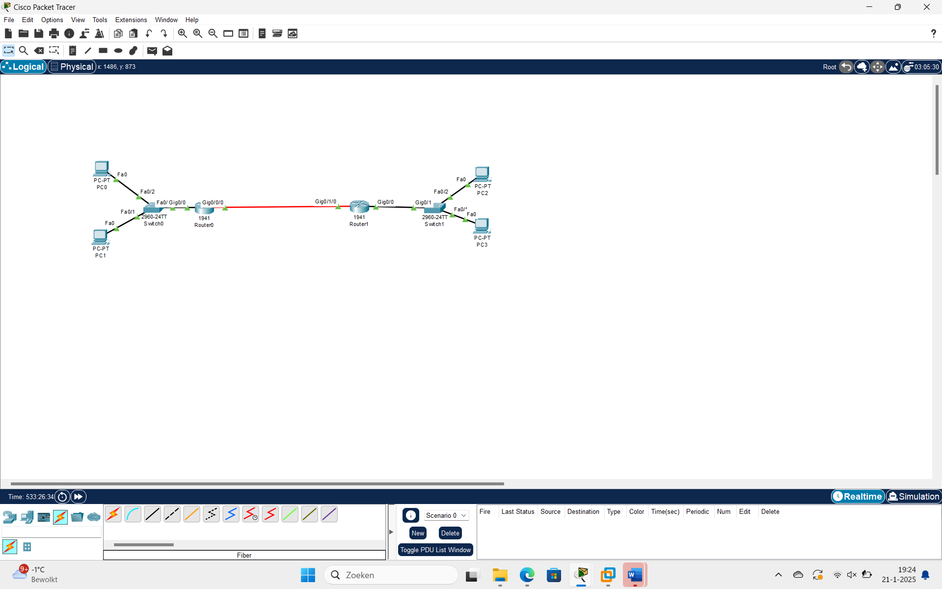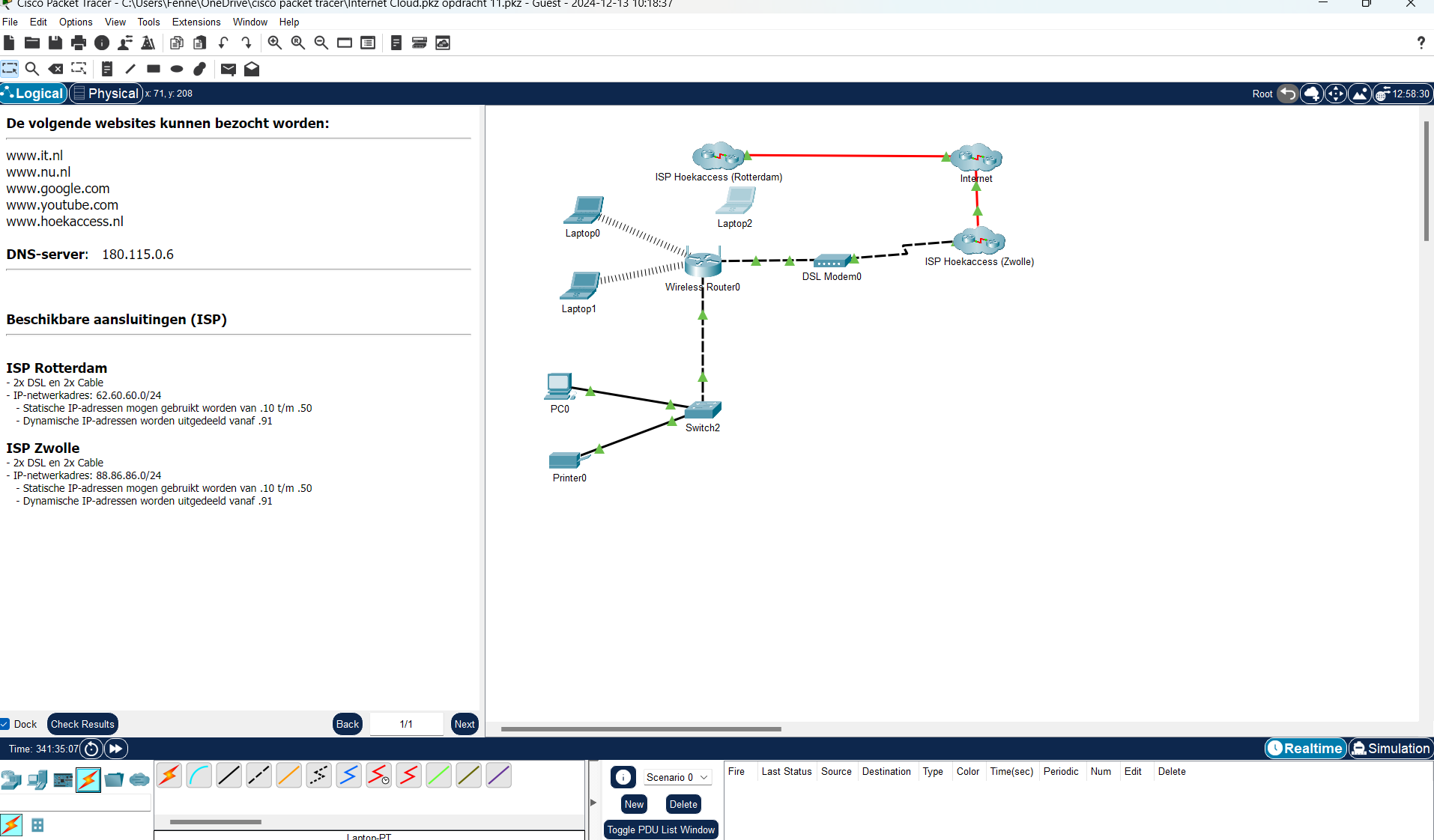 De situatie was dat ik Cisco packet tracer moest maken. We in de les samen met de docent Cisco packet tracer maken. De hele klas moest de opdrachten maken. Het speelde zich af in het klaslokaal, en de lessen was gedurende hele periode.