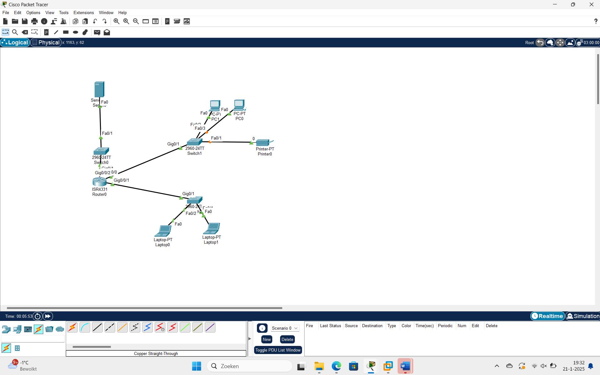 Mijn taak was om Cisco packet tracer te maken. Ik had daardoor geen specifieke rol. En mijn doel was dat ik goed meedeed met de les. Ik verwachtte dat het makkelijk zou zijn en dat het snel klaar was.